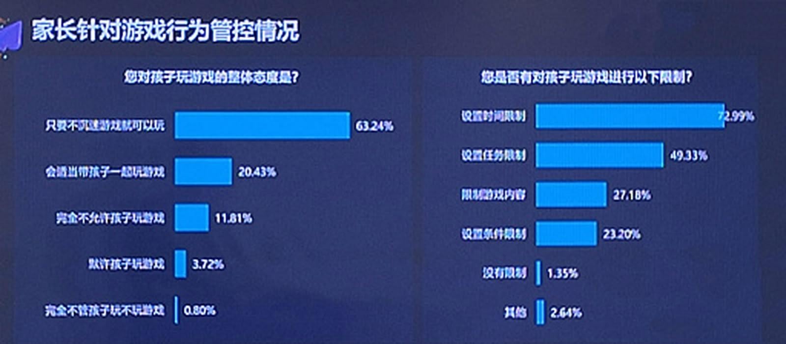 自 2020 年起,中國政府持續加強對未成年人士的線上遊戲限制。調查結果顯示,相關措施已產生一定成效,71% 受訪未成年人每週遊戲時間控制在 3 小時內,而 90.4% 的課金金額亦符合規定範圍。